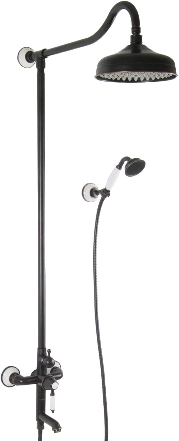 PaulGurkes Aufputz Duschsystem Retro Nostalgie Regendusche Set Duschsäule Antik Duschset Dusche Brau