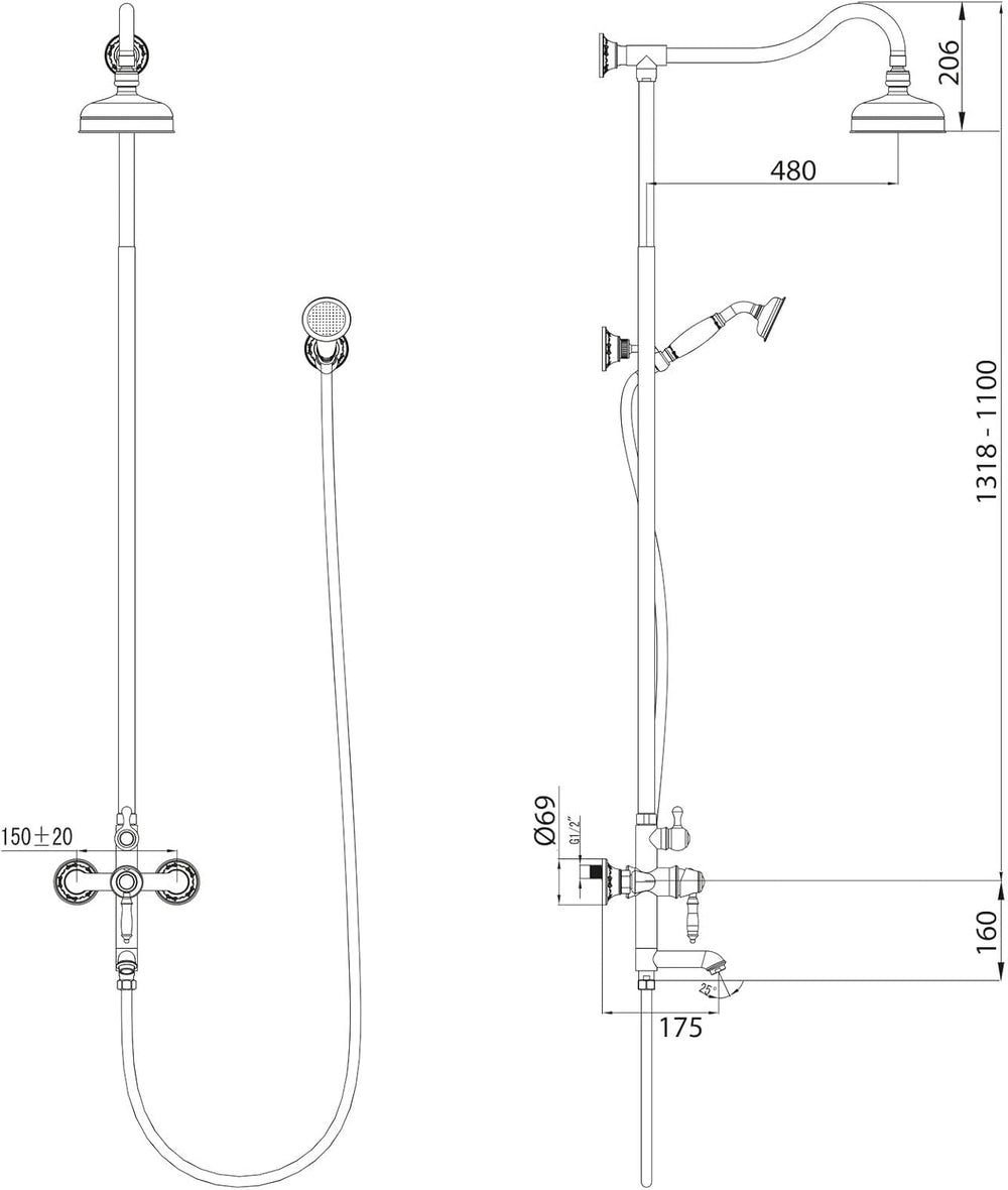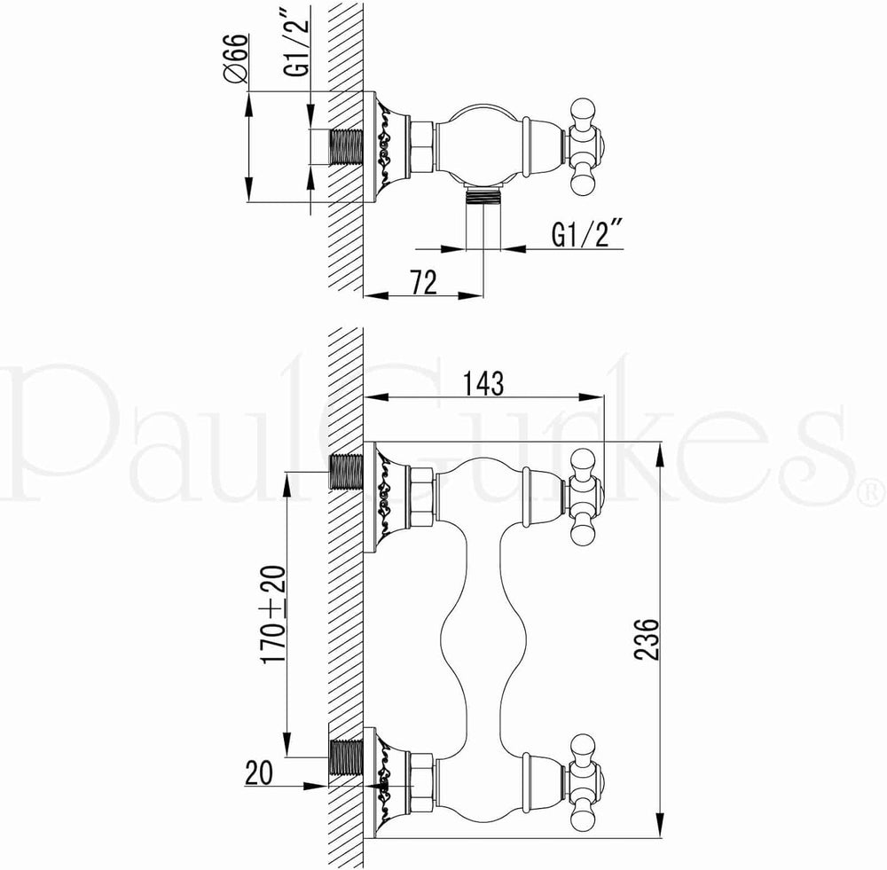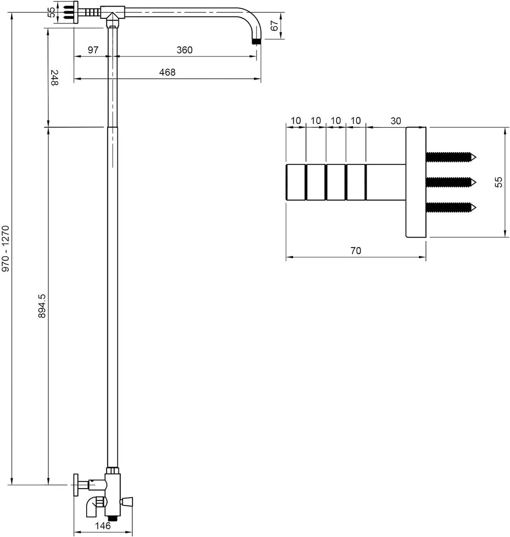 PaulGurkes Duschstange aus Metall Brausestange Aufputz Dusche Kreuzgriff