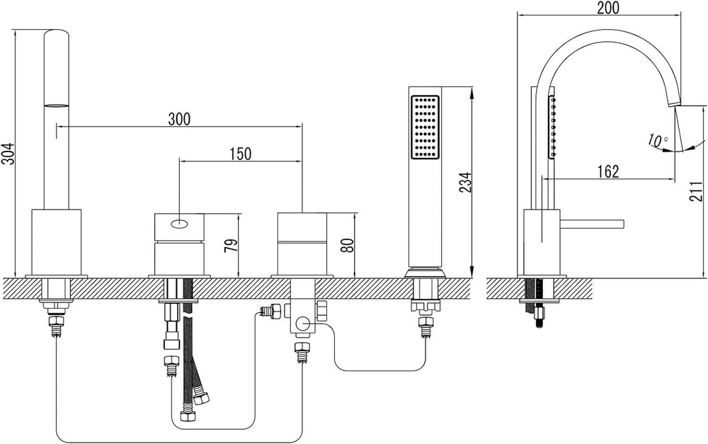 PaulGurkes 4-Loch Wannenrandarmatur Wannenkombination oval Wannenarmatur Badewannenarmatur Wannenfül
