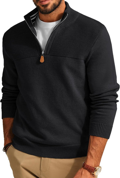 Strickpullover Herren Troyer Pullover mit Reissverschluss und Stehkragen Arbeitspullover, S Schwarz
