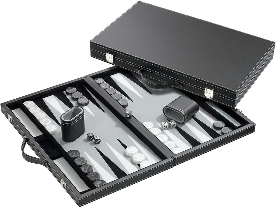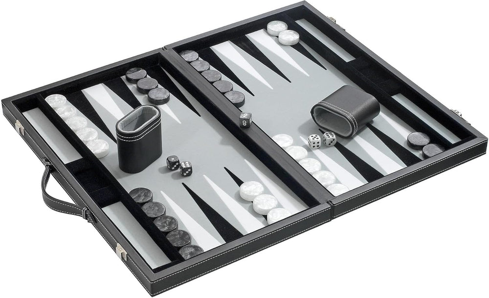 Philos 1721 - Backgammon Filzinlet grau-weiss-schwarz, gross, Koffer Kunstleder
