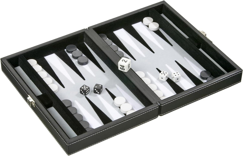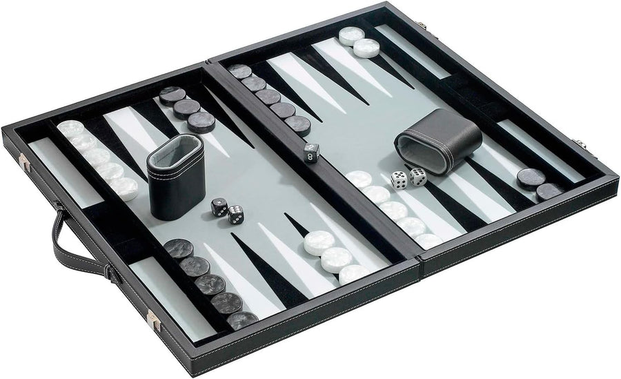 Philos 1731 - Backgammon Filzinlet grau-weiss-schwarz, medium, Koffer Kunstleder Grau,grau-weiss-sch