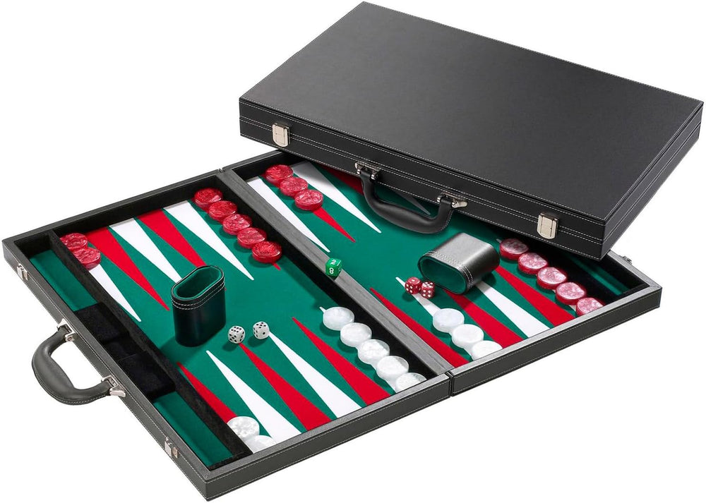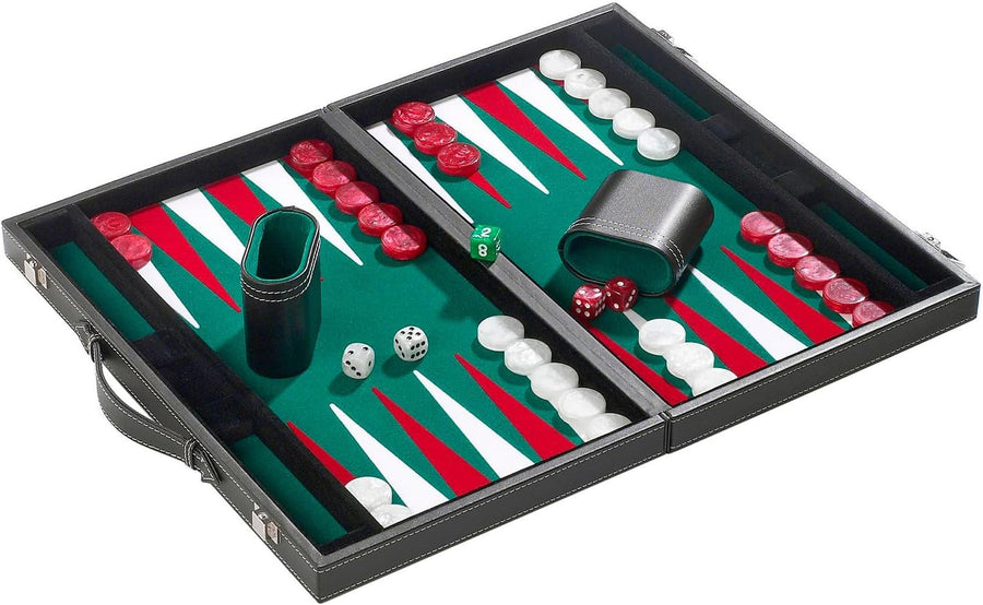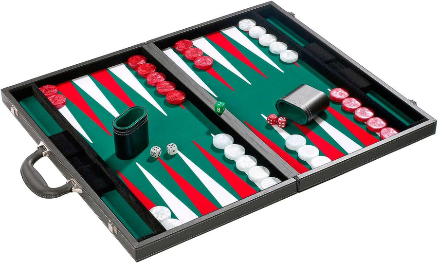 Philos 1715 - Backgammon Turniergrösse, Filzinlet grün-weiss-rot, Koffer Kunstleder, grün