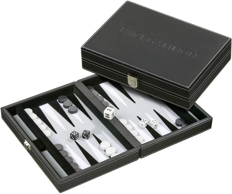 Philos 1712 - Backgammon Tinos, klein, grau, Kunstleder, magnetisch, Reisespiel