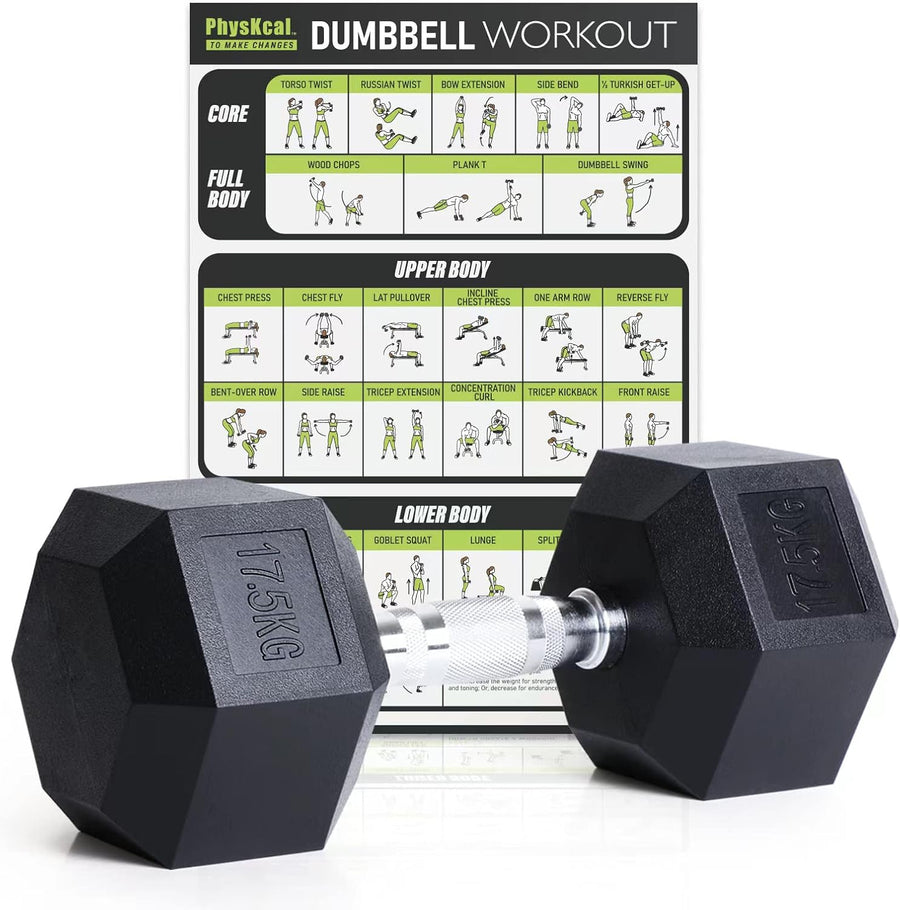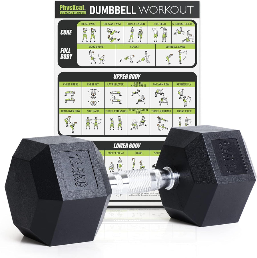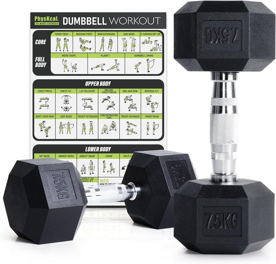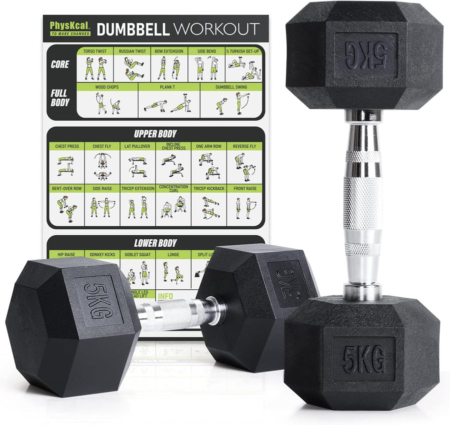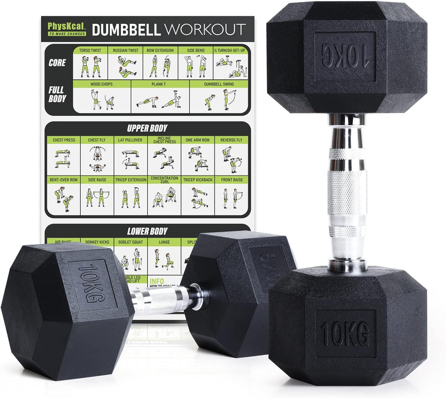 PhysKcal Hexagon Hanteln Poly-Gummierte | 2,5-20 kg | Rutschsicher Ummantelt | Ergonomische Verchrom