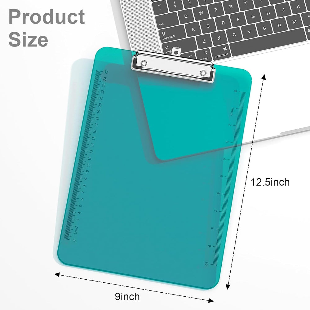 Piasoenc Kunststoff-Klemmbretter, durchscheinendes Lineal, Klemmbrett mit niedrigem Profil, Bürobeda