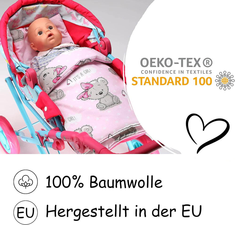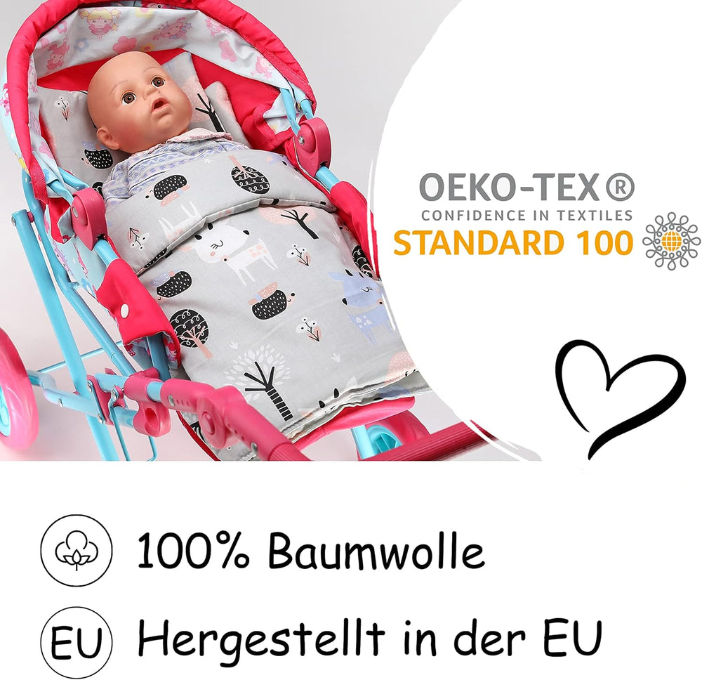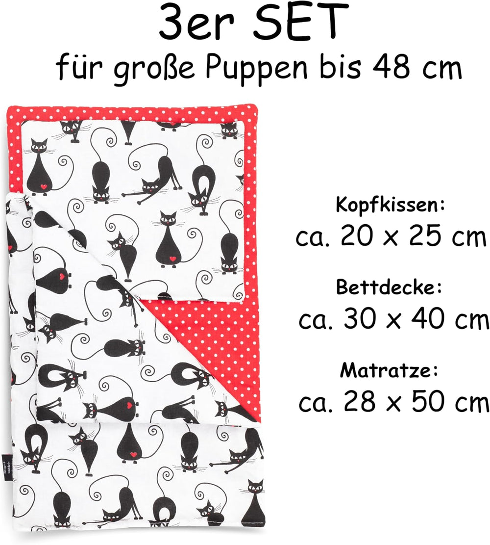 PinkZebra 3-teilig Puppenbettwäsche für grosse Puppen bis 48 cm, Decke + Kissen + Matratze, Puppenbe
