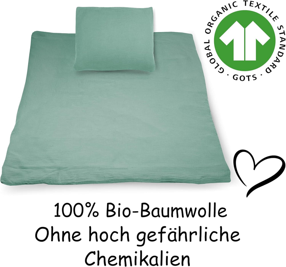 PinkZebra Baby Musselin - Bettwäsche 80 x 80 cm + 35 x 40 cm, Kinderbettwäsche aus ohne GMO 100% Bio