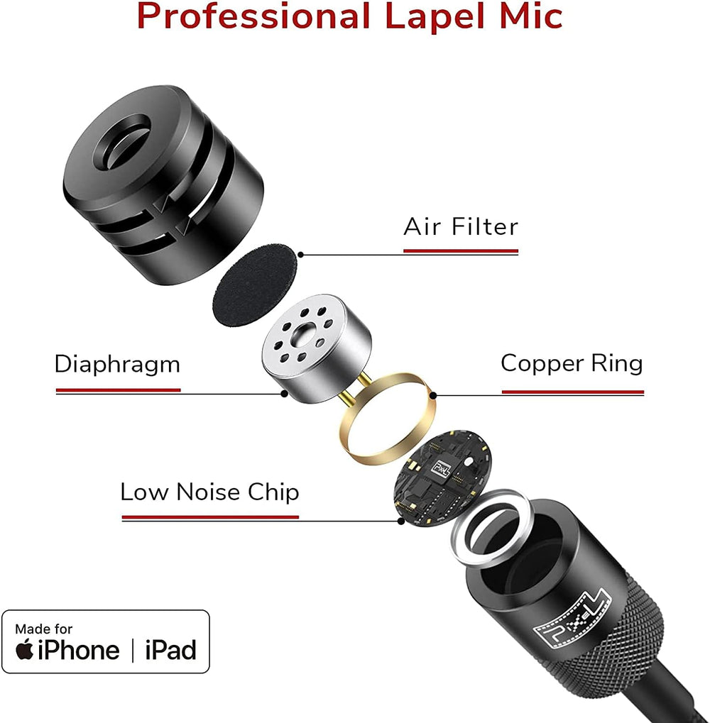Pixel Lavalier Mikrofon Kompatibel mit iPhone/IPad (Apple MFi-Zertifiziert) für Videoaufnahmen Lives
