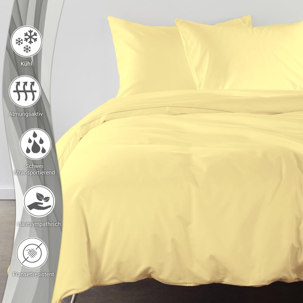 Pizuna 600 Fadenzahl aus Baumwolle Bettwäsche Mildes Gelb, 100% Langstaple Baumwolle Bettbezug und K