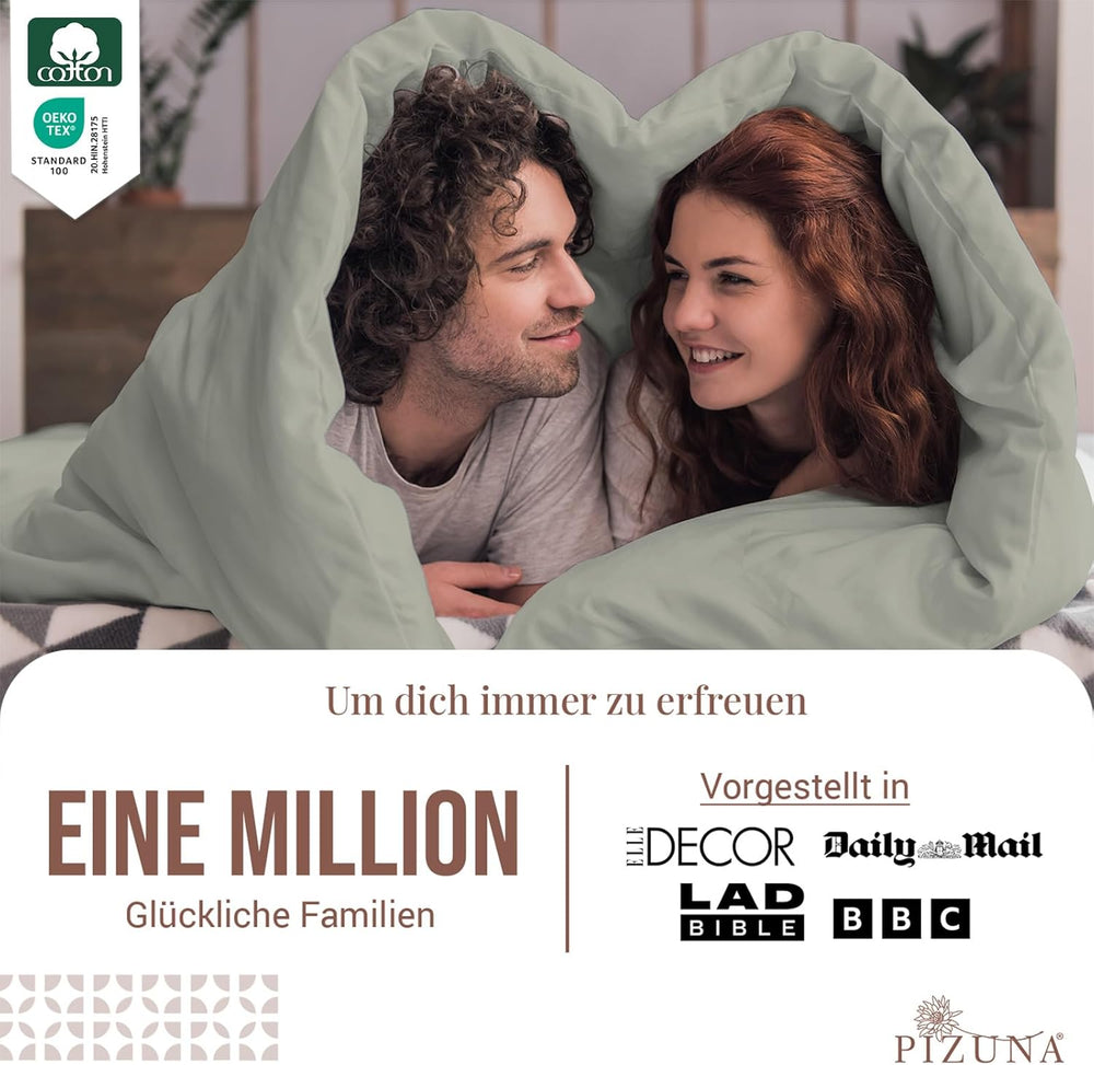 Pizuna 400 Fadenzahl aus Baumwolle Bettwäsche Aschgrau, 100% Langstaple Baumwolle Bettbezug und Kiss