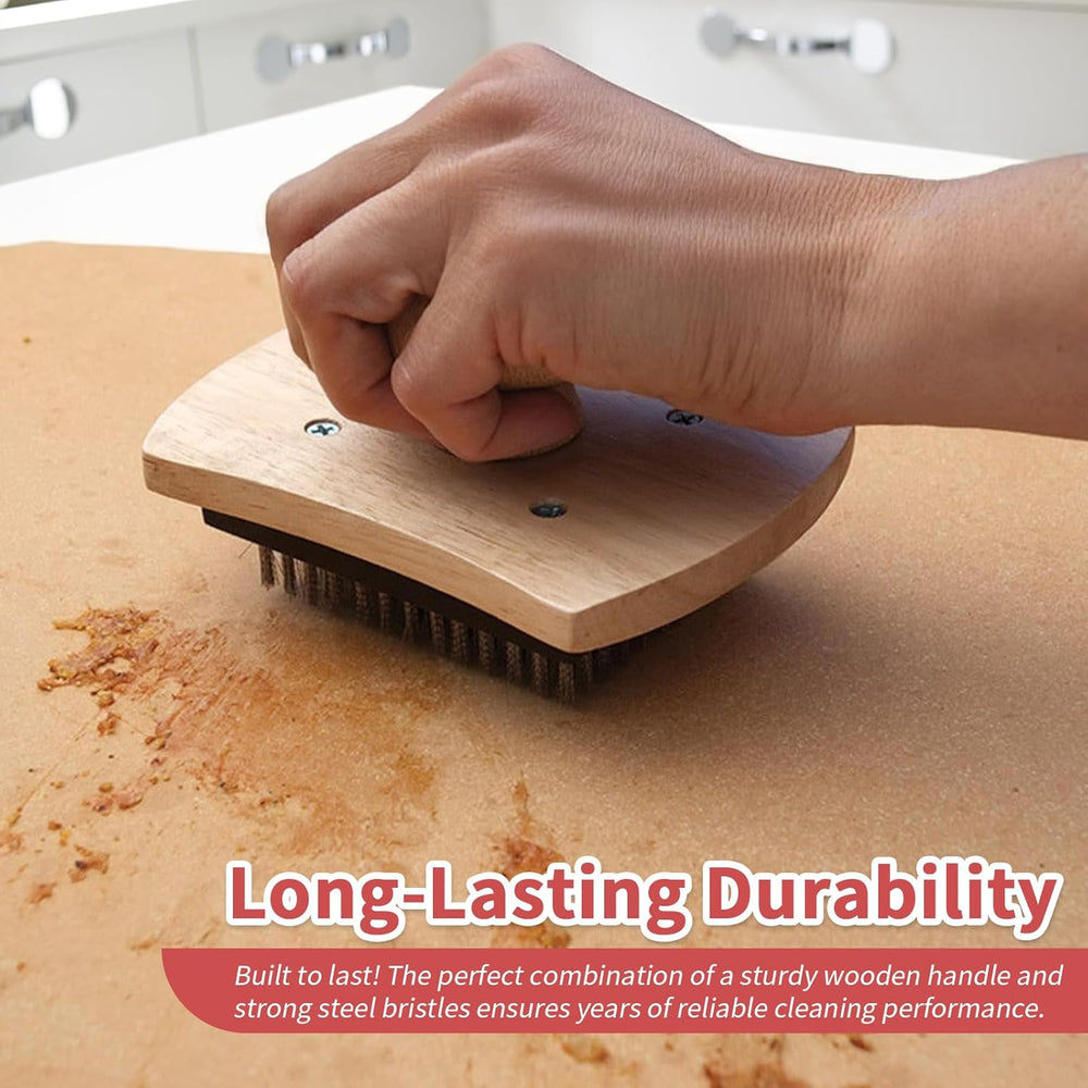 Pizzasteinbürste, 10,2 x 12,7 cm, Hartholzgriff, Pizzastein-Schrubber mit Edelstahlborsten (A), A
