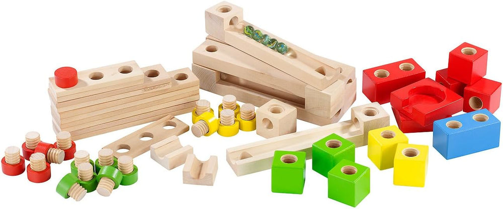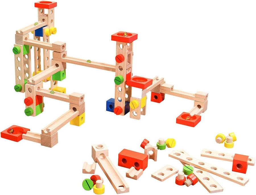 Playtastic Holzkugelbahn: Kugelbahn-Bausatz aus Holz, 50-teilig (Holz Murmelbahn, Kugelbahn Kinder,