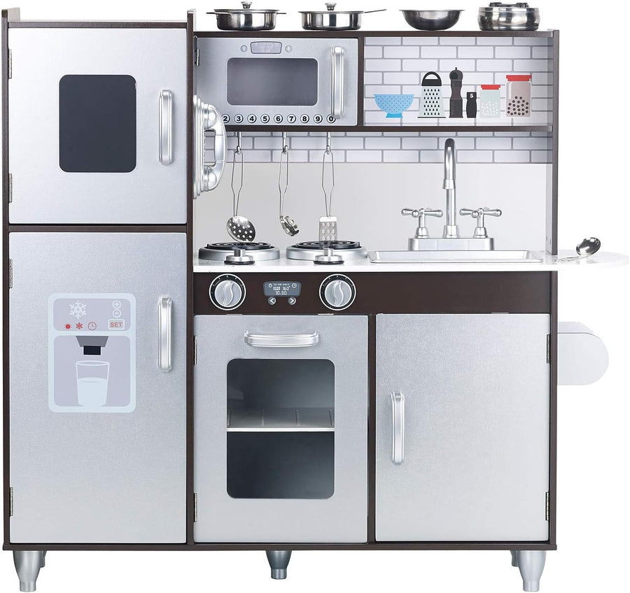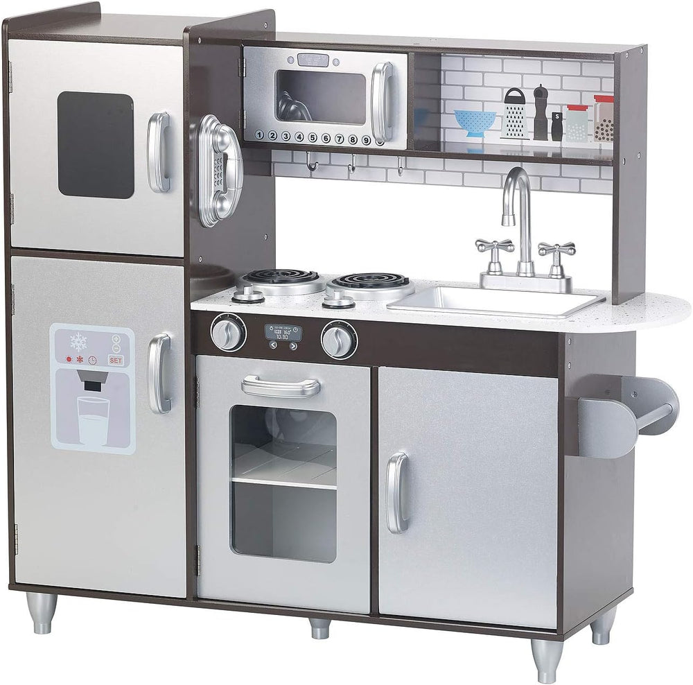 Playtastic Kinderküche: Premium Kinder-Spielküche aus Holz mit Kochtöpfen und Zubehör (Küche Kinder,