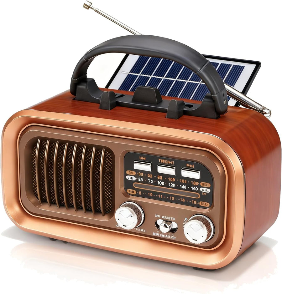 Bluetooth Vintage Retro Radio, Small Am FM Transistor, Battery oder Solar Operated Radio, Wiederaufl