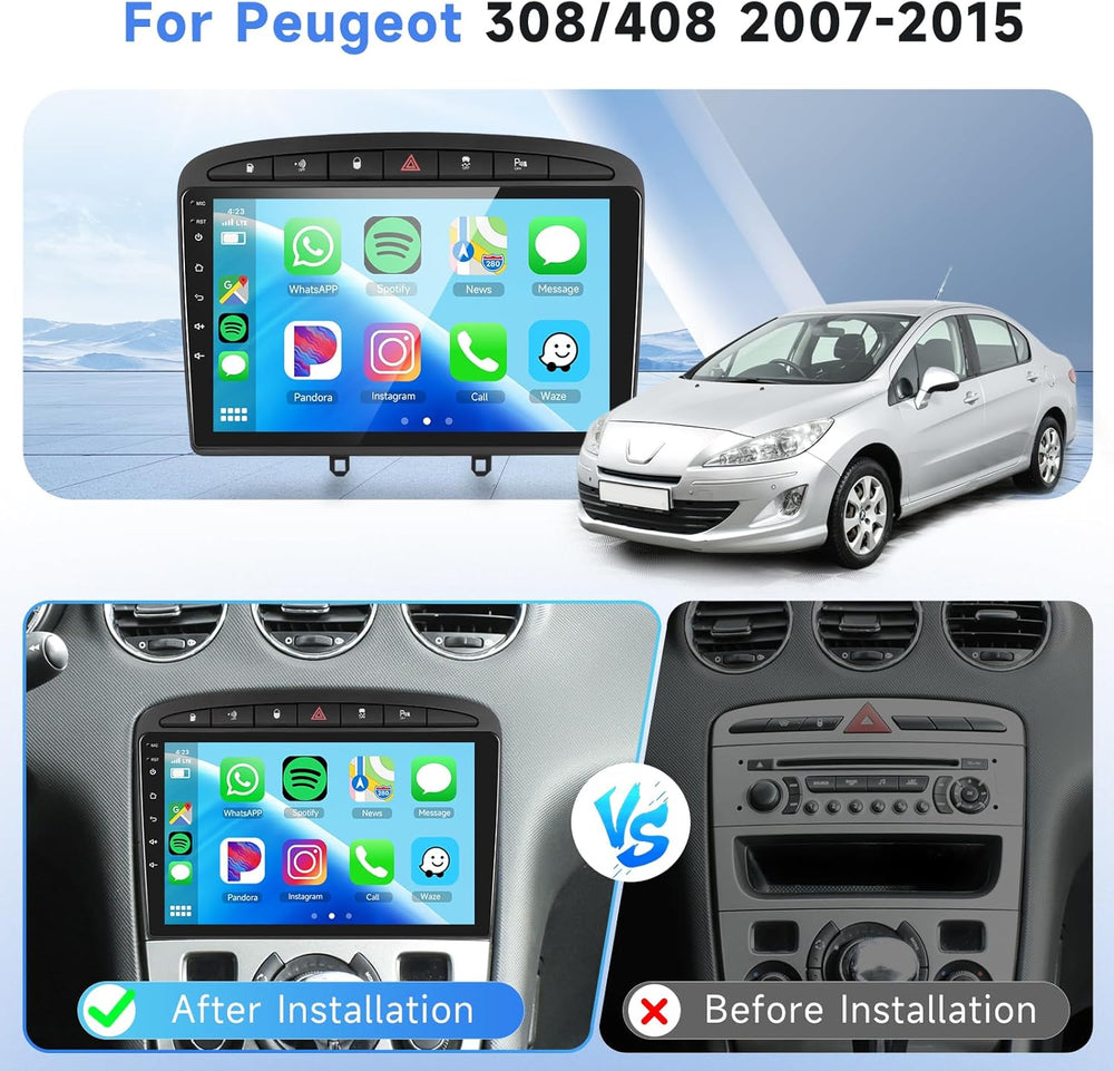 Podofo Autoradio für Peugeot 308/408 2007-2015 mit Wireless Carplay Android Auto, 8 Core, 4+64G, 9"
