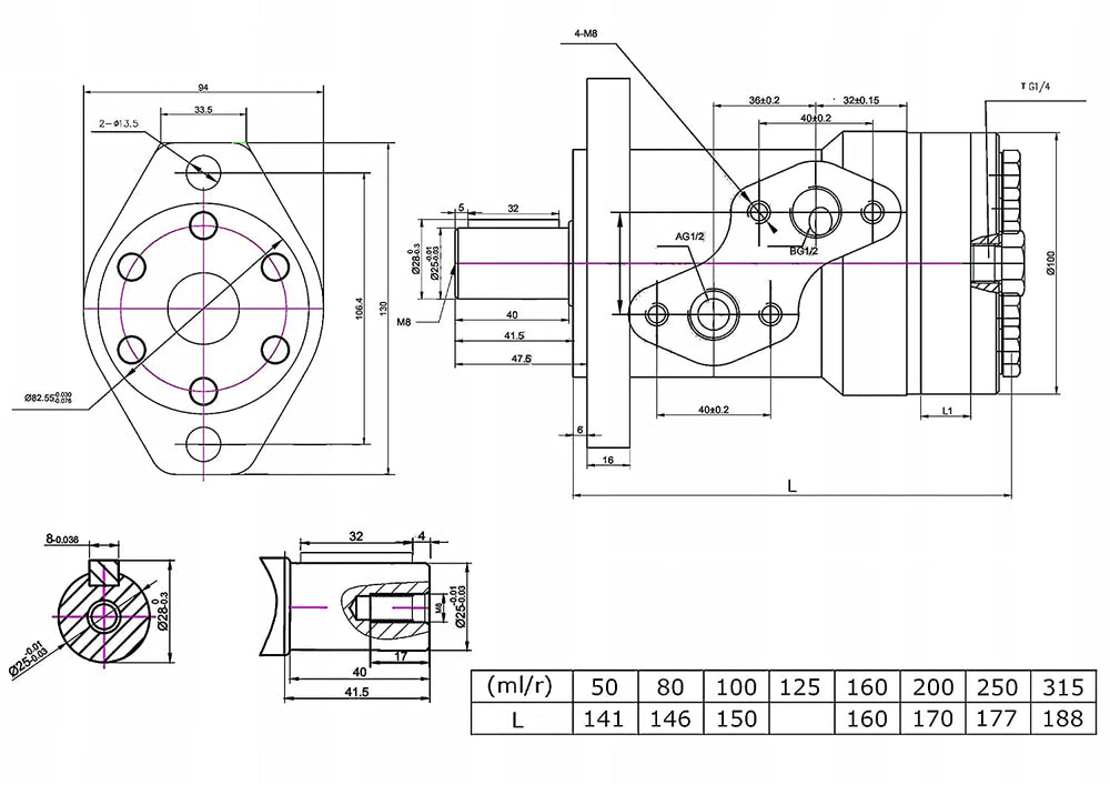 Presko Orbitaler Gerotor Hydraulikmotor 315 cm³/Umdrehung G ½" Anschluss, SAE A - Äquivalent OMR 315