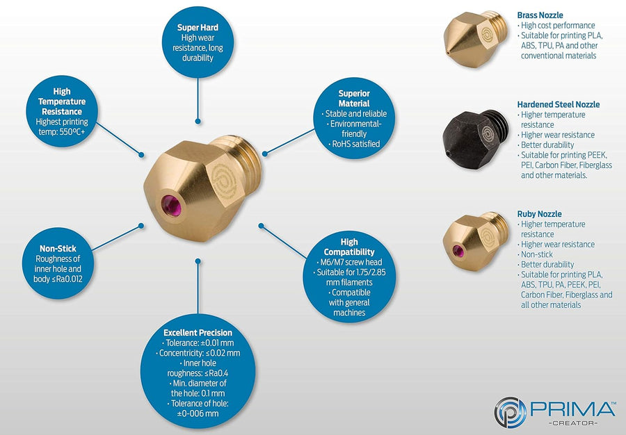 PrimaCreator - MK8 - gehärtete Stahl-Nozzle - 0,2 / 0,4 / 0,6 / 0,8 mm - 4 Stk Schwarz gehärtet 0,2