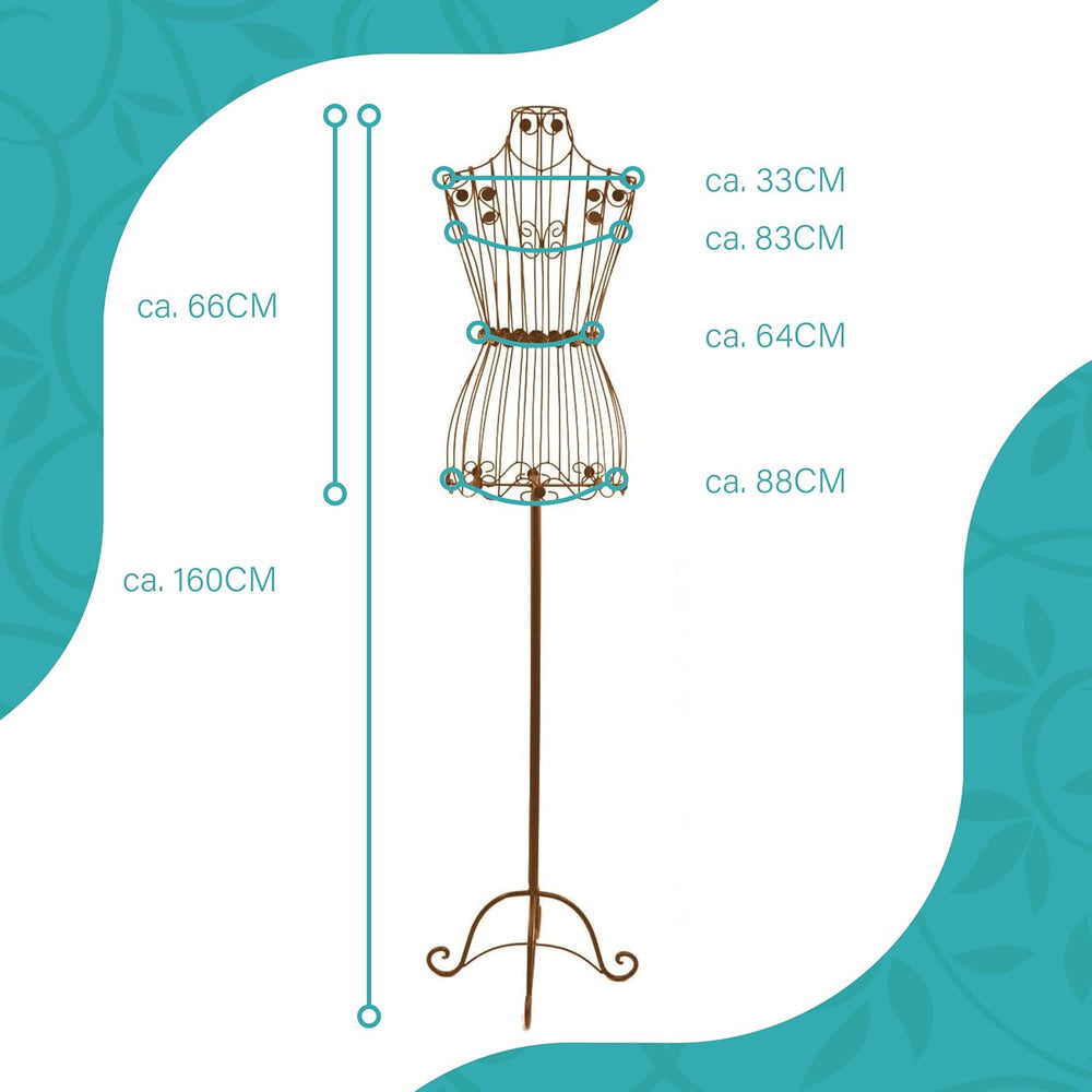 PrimoLiving Metall Schneiderpuppe Bella Donna in Antikbraun - Deko Mannequin Büste im Vintage-Look -