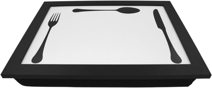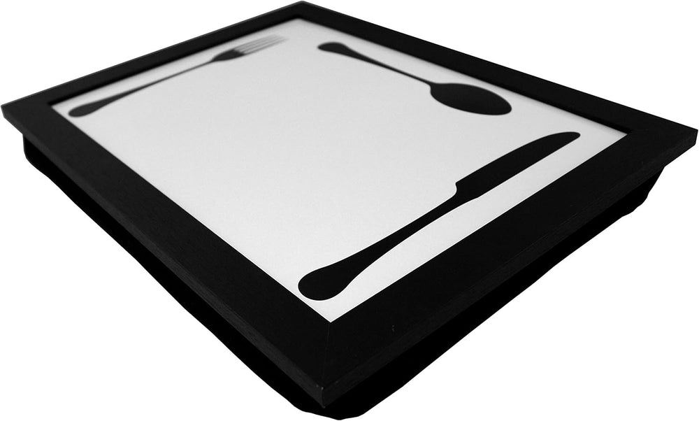 PrimoLiving Knietablett mit Besteck- 40 x 30 x 5 cm – Tablett als Laptopunterlage – Sofa oder Bett-T