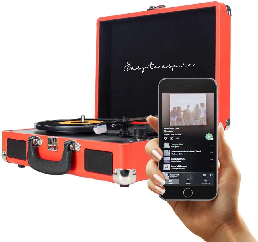 PRIXTON - VC400 Vintage-Vinyl-Plattenspieler | Vinyl-Player & Konverter über Bluetooth & USB | 2 ein