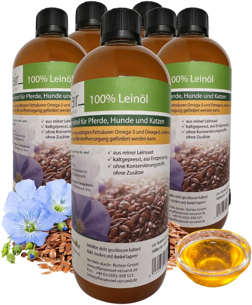 6 Liter ProFair Leinöl (6 x 1 Liter-Flasche) kaltgepresst, 100% aus Reiner Leinsaat, Erstpressung, o