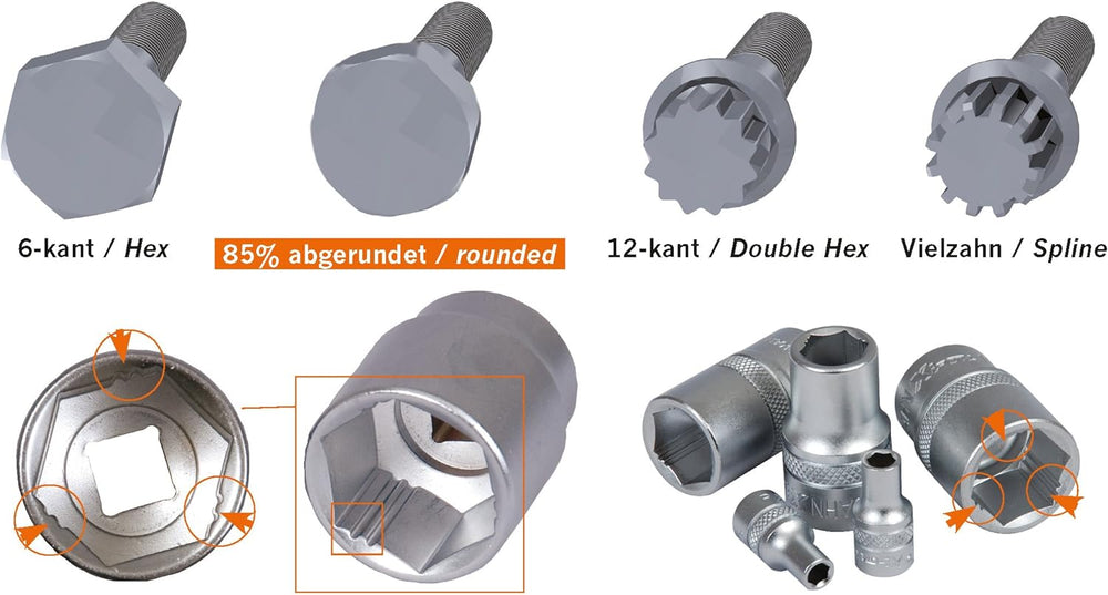 Projahn 1/4 und 1/2 Zoll Steckschlüssel Satz 108-teilig proficraft 8654 72 Zähne 22 Teile 1/2", 72 Z