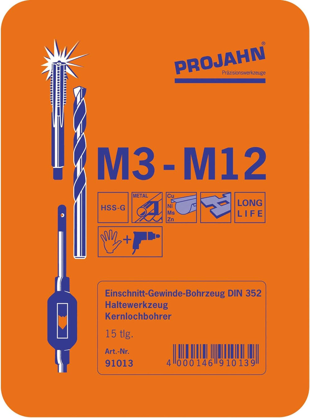 Projahn 91013 Einschnitt Gewindebohrer Satz 15-TLG., Gewindebohrer für Maschinen- und Handgebrauch,