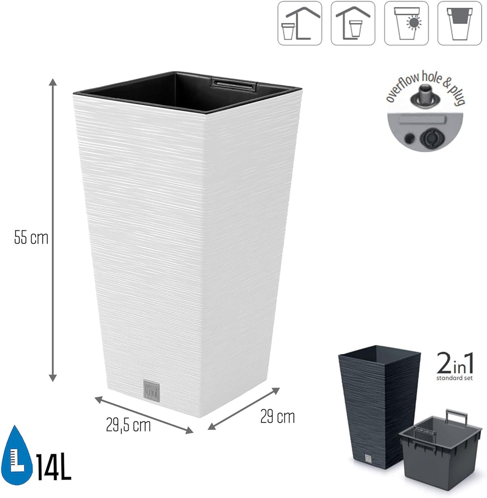 Macetero color blanco, con depósito, colección FURU, de 29,5 x 29,5 x 55 cm, capacidad de 14 L. Weis