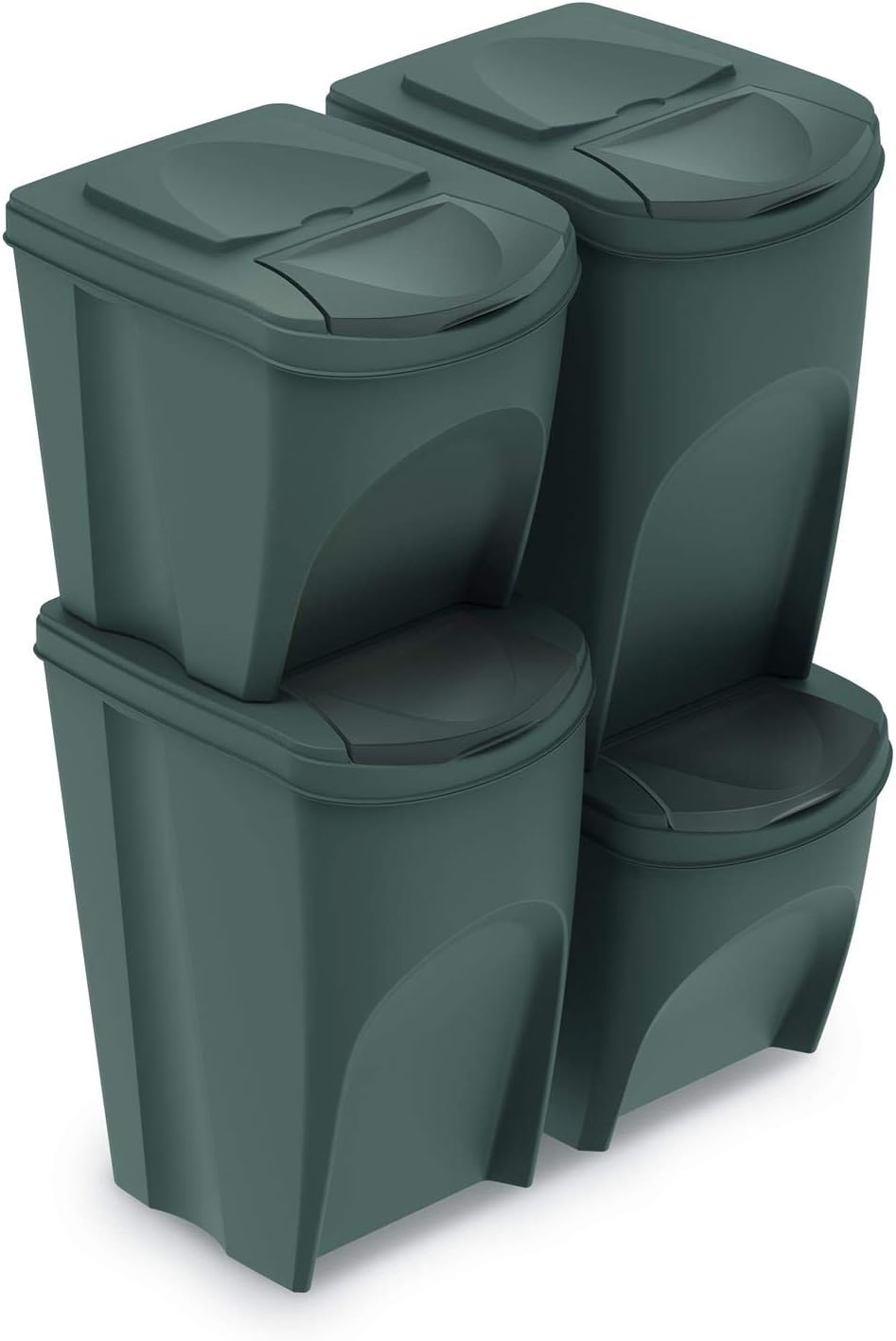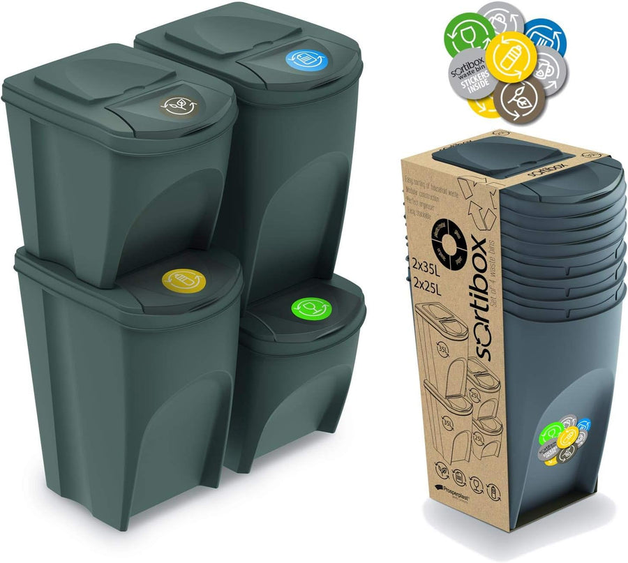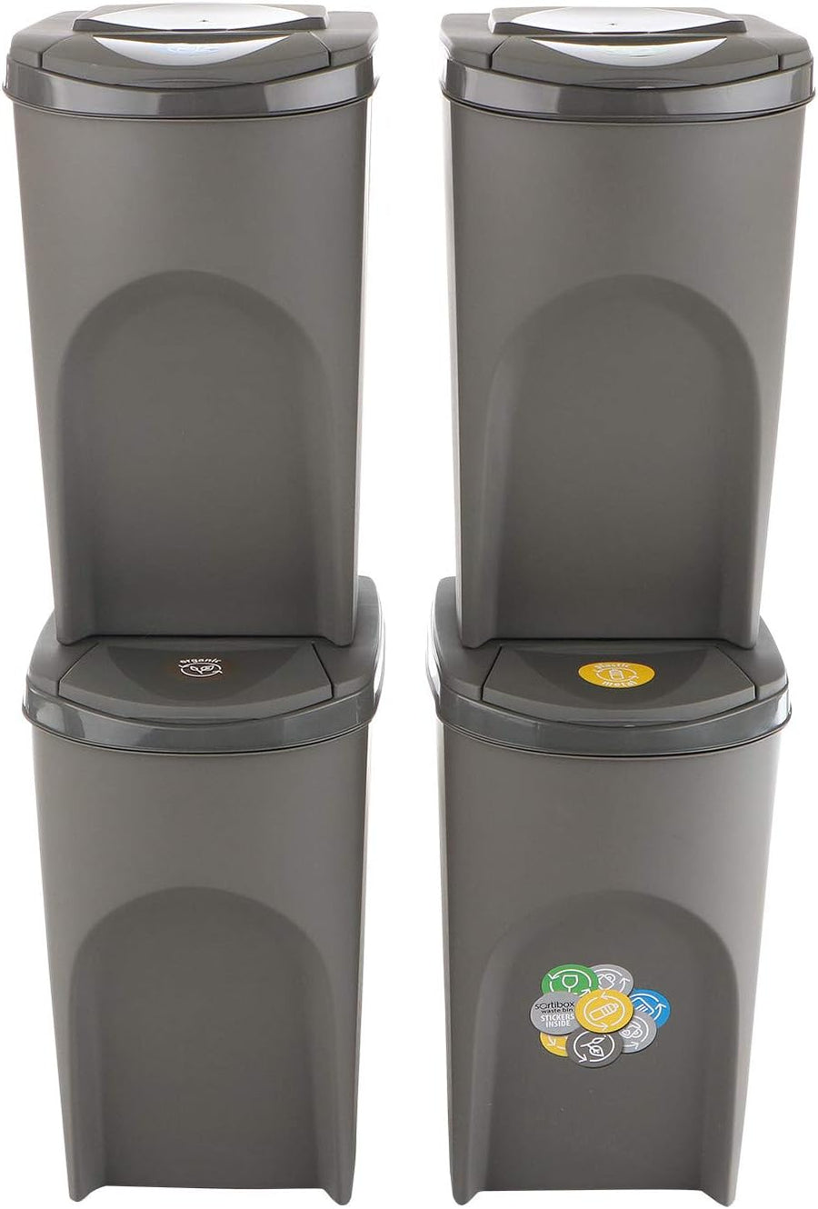 Juego de 4 cubos de reciclaje (2x35L y 2x25L) Prosperplast Sortibox de plastico en color gris