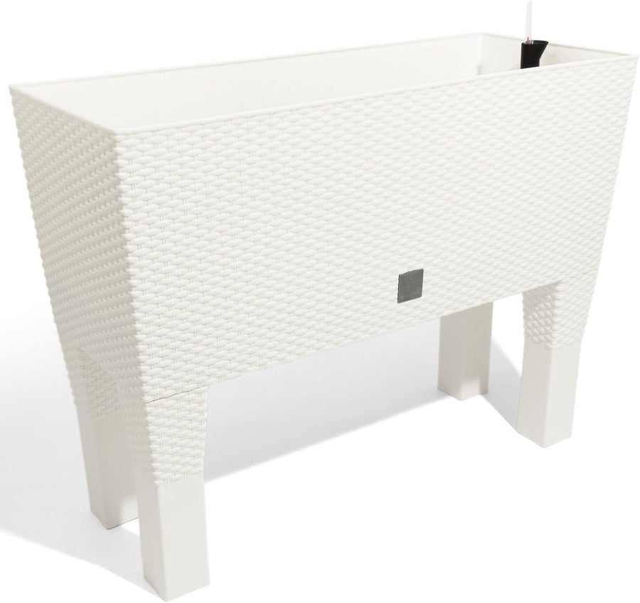 72L Blumentopf Blumenbank m. Füssen in Rattan-Optik Bewässerungssystem Serie Case High weiss