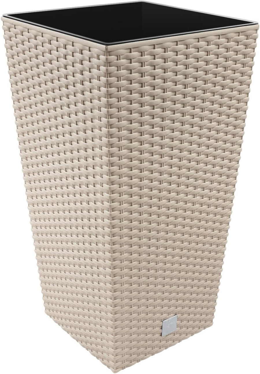 Prosperplast Blumentopf Rato Square (Rattanoptik, herausnehmbarer Einsatz, 32,5x32,5x61 cm, 49 l, mo