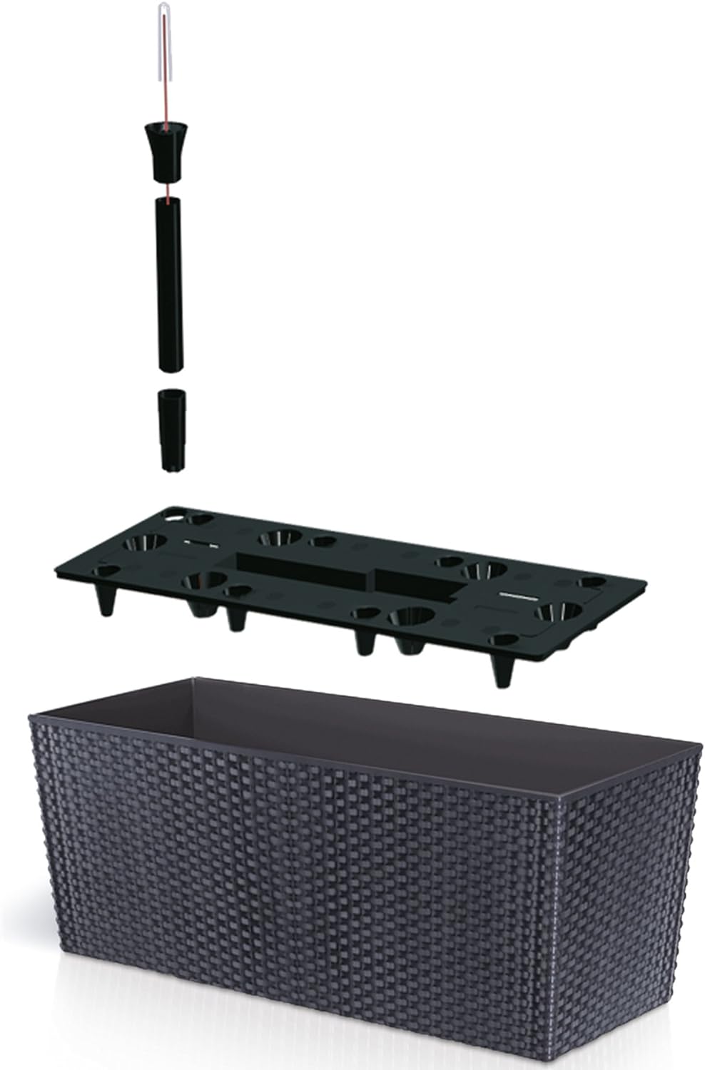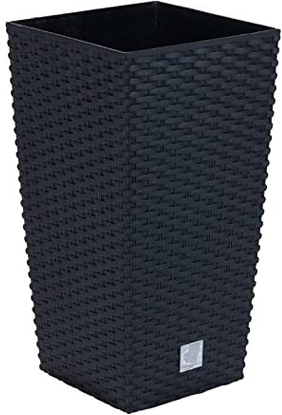Prosperplast quadratisch Blumentopf in Rattan-Optik Rato Serie anthrazit Volumen 64 L, schwarz, 39 x