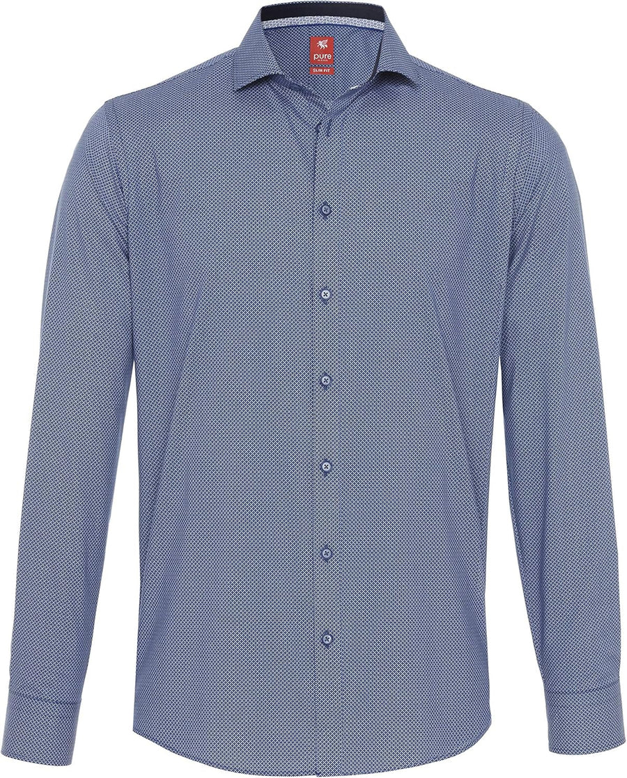 Pure Slim Fit Functional Hemd Langarm Haifischkragen Stretch Muster blau 39 Schwarz, 39 Schwarz