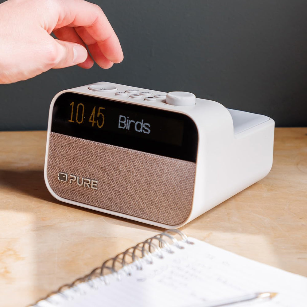 Pure Moment Charge – Radiowecker mit Wireless-Ladepad, DAB+/FM, Bluetooth, natürlichen Klängen, Whit