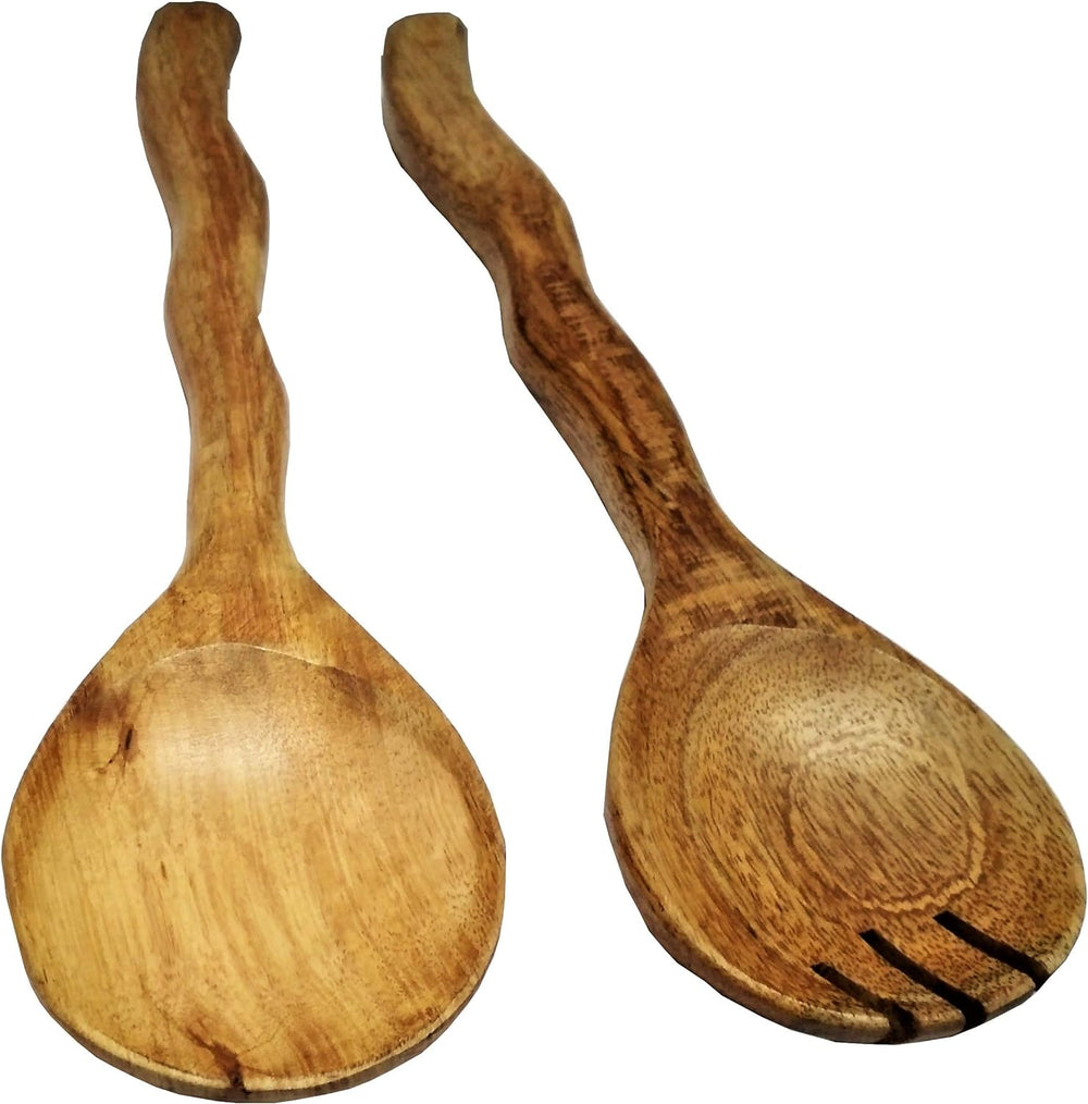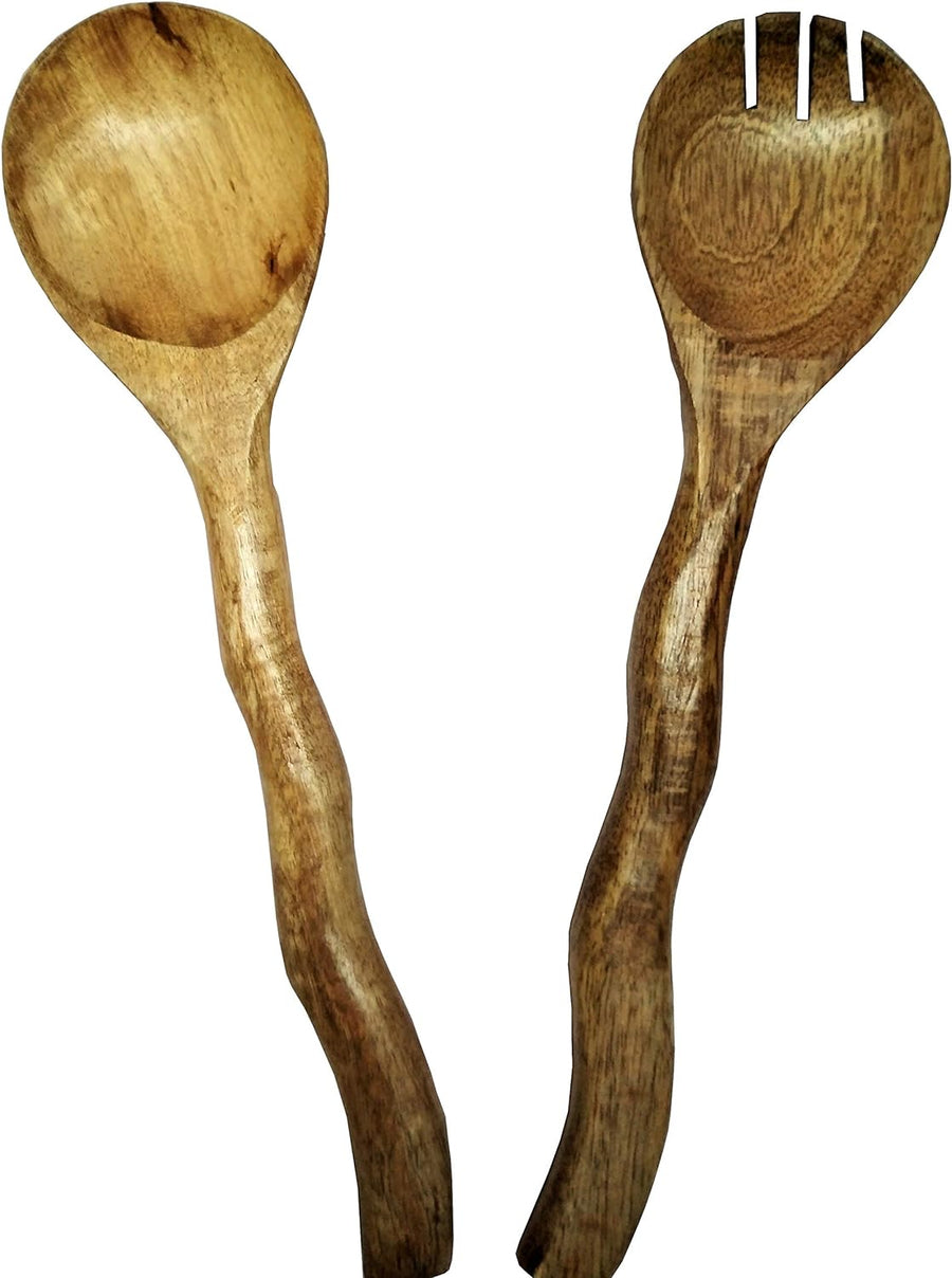 Purpledip 11630 Servierlöffel und Gabel aus Holz, handgefertigt, Vintage-Geschirr oder Küchendekorat
