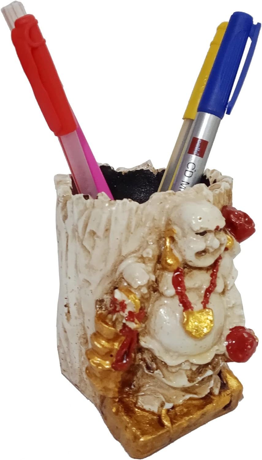 Purpledip 12402 Stifthalter aus Kunstharz, Motiv: Lachender Buddha, Harbinger of Wisdom & Reichtum
