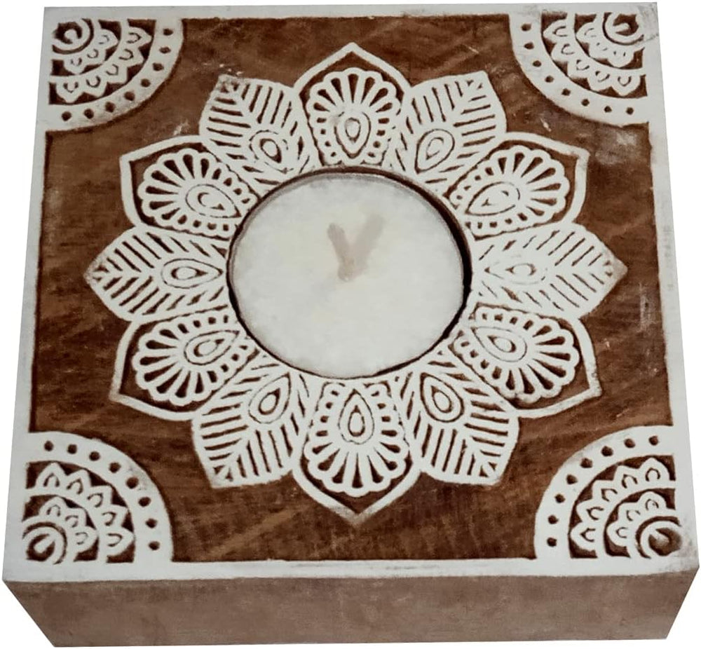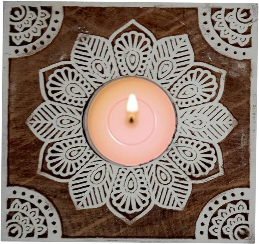 Purpledip 12509 Kerzenhalter aus Holz mit einzigartigem Rangoli-Design