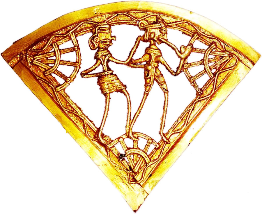 Purpledip Brass Wall Hanging Plaque 'Farm Life': Dokra Craft Tribal Artform Slice Plate Statue (1144