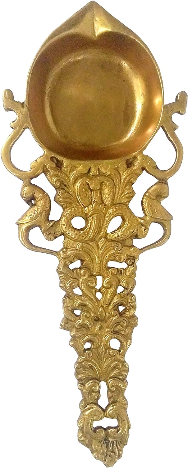 Purpledip Aarti Grand Hawan Löffel aus Messing, Papageien-Design, Vintage-Tischdekoration (11968)
