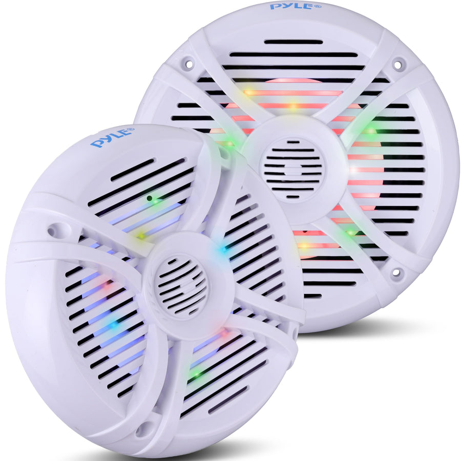 Pyle 6.5'' Waterproof Audio Marine Grade Dual Speakers with Built-in Programmable Multi-Color LED Li