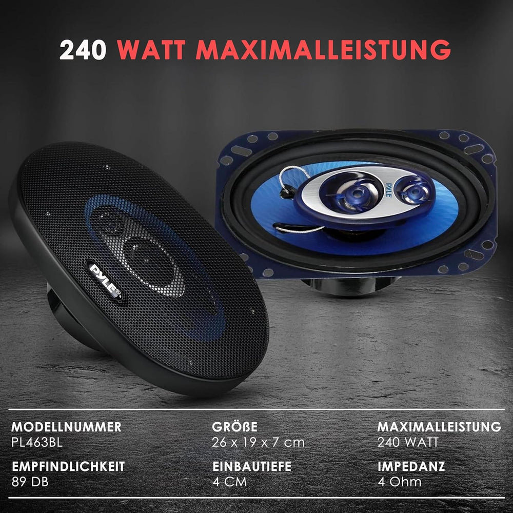 Pyle Auto Lautsprecher Set 15,2 cm x 20,3 cm, 3-Wege Lautsprecher Boxen, 360W, 91 dB, Einbaulautspre