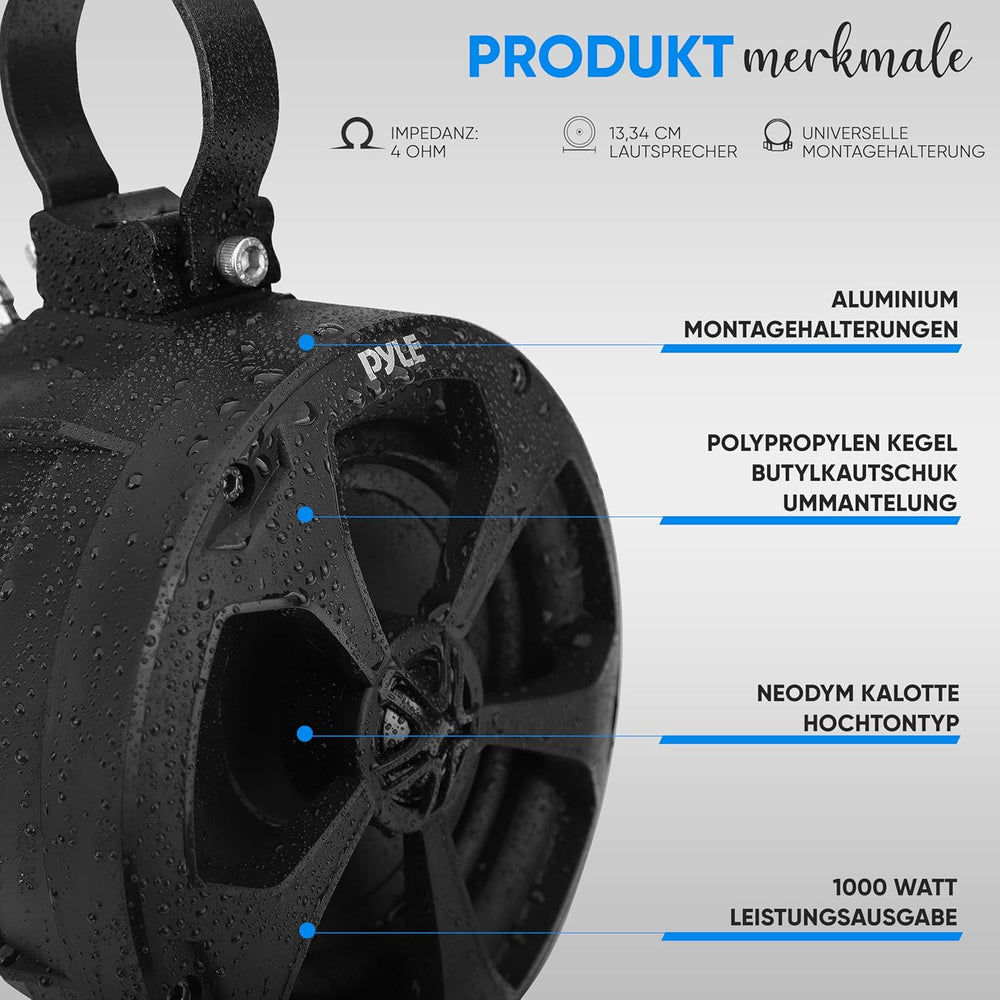 PYLE 2-Way Dual Waterproof Off-Road Speakers - 5.25 Inch 1000W Marine Grade Wake Tower Speakers Syst