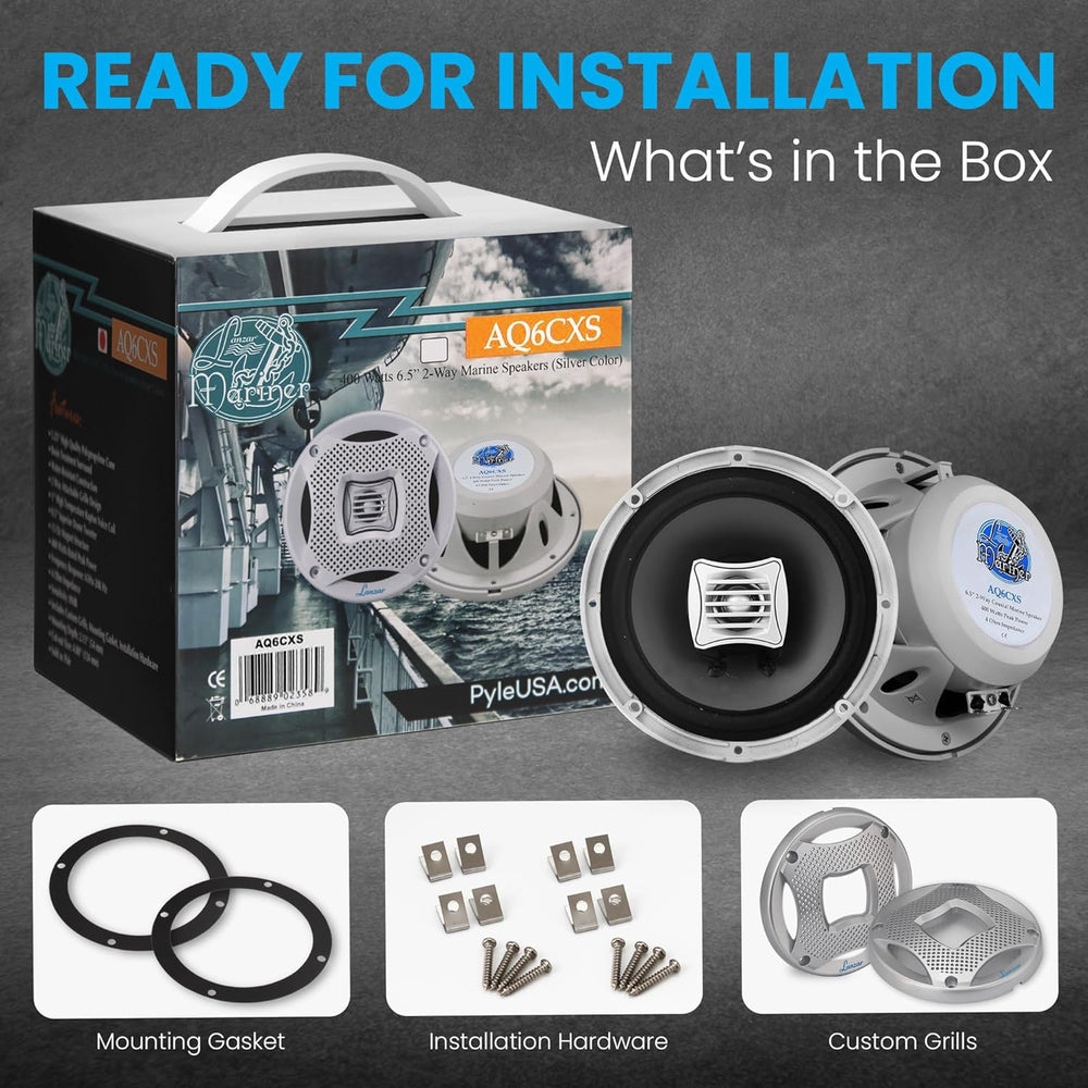 PYLE Audio INC Marine-Lautsprecher (150 Watt, 16,51 cm (6,5 Zoll), 2-Wege) Silber, PLMR60S