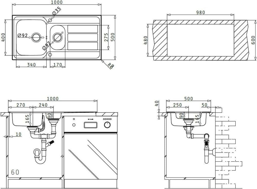 Pyramis ATHENA (100x50) 1 1/2B 1D Einbauspüle Edelstahl, poliert, 101100312 100 x 50 cm, 100 x 50 cm