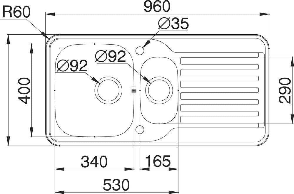 Pyramis ATHENA (116x50) 2B 1D Einbauspüle Edelstahl, poliert, 101102012