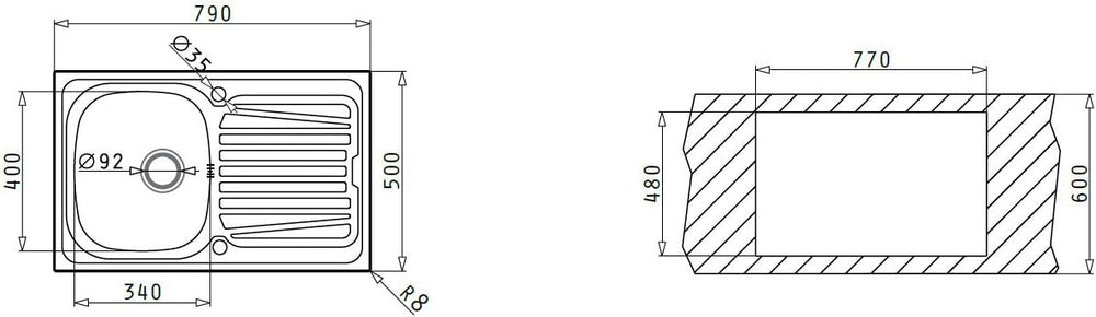 Pyramis 100131912 Sparta Edelstahlspüle 79 x 50 / 1B 1D,Glatt Glatt 79 x 50 cm, Glatt 79 x 50 cm