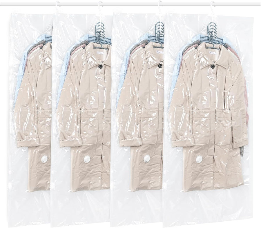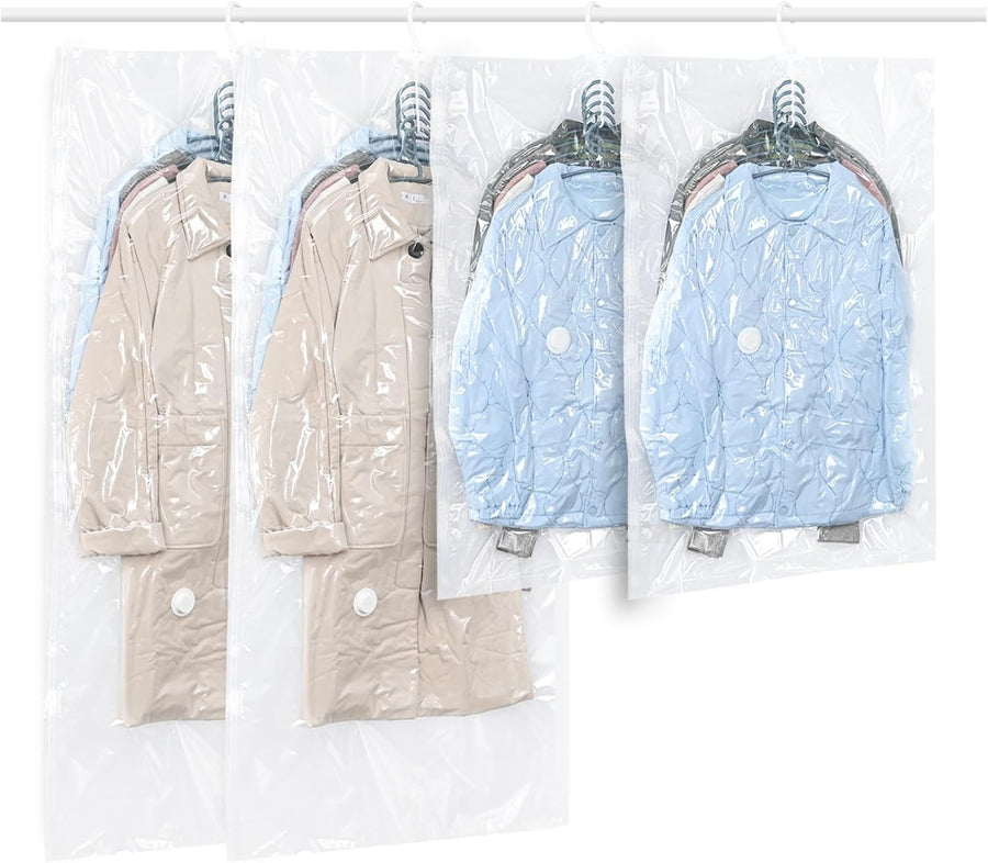 Vakuumbeutel zum Aufhängen, platzsparend, 4 Stück, für Kleidung, Anzüge, Kleider, Mäntel oder Jacken