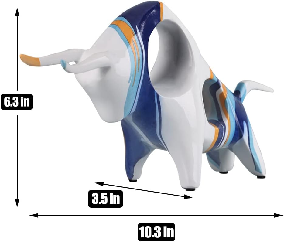 Stierstatue aus Kunstharz in Blau-Orange, minimalistische, vollfarbige Stierfigur, Originalität, abs