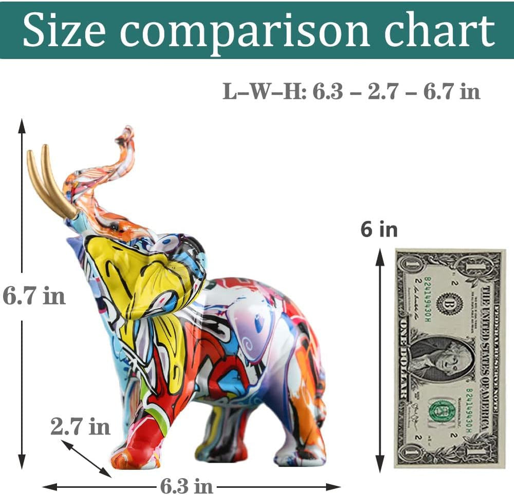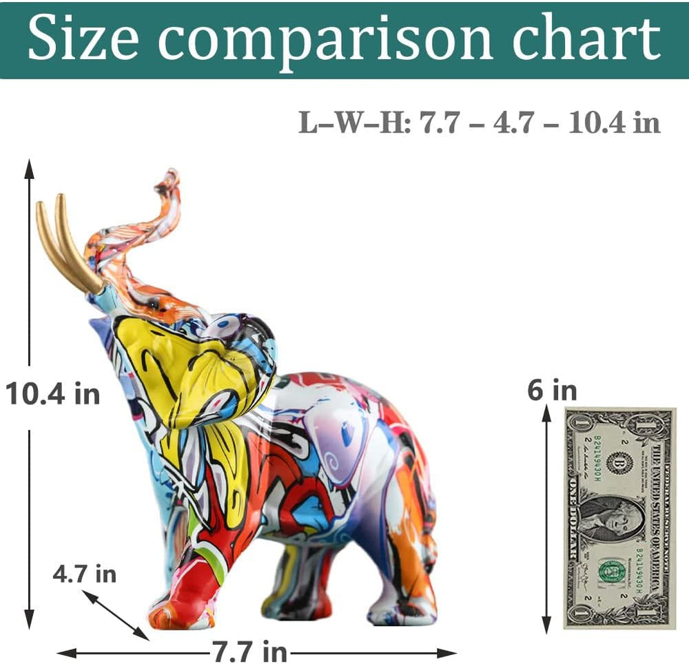 26,4 cm hoch, kreative Graffiti-Elefanten-Figuren, Kunstharz, Bunte Elefantenstatuen, Heimdekoration